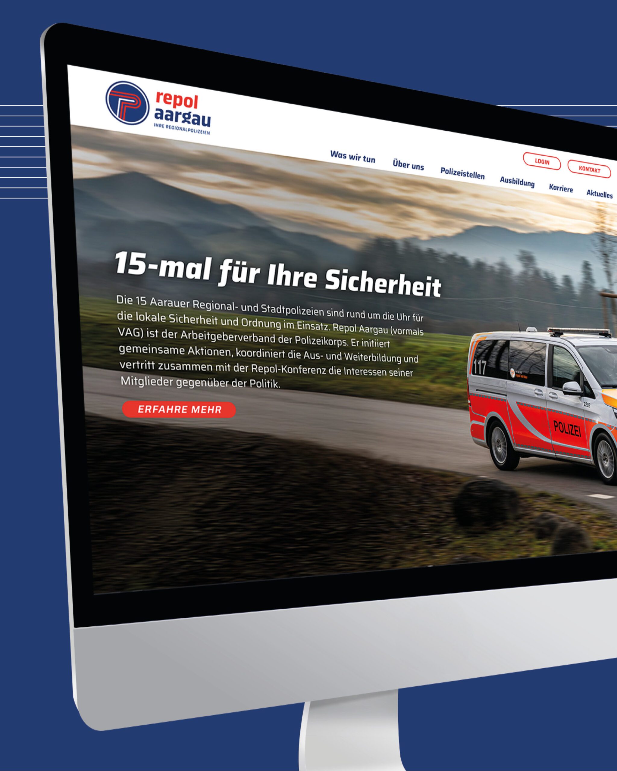 Für Repol Aargau, die gemeinsame Dachmarke der 15 Aargauer Regional- und Stadtpolizeien, durfte BurgerGasser ein umfassendes Branding entwickeln, das den Zusammenhalt der Mitgliedsorganisationen sichtbar stärkt und ihnen eine klare, gemeinsame Stimme verleiht. Ziel war es, eine einheitliche Identität zu schaffen, die sowohl die Vielfalt der einzelnen Polizeikorps respektiert als auch die gemeinsame Zugehörigkeit zur Dachmarke betont.